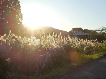 夕方に自転車で少し走ってきました。 ススキが夕日に照らされて眩しく輝いてます …