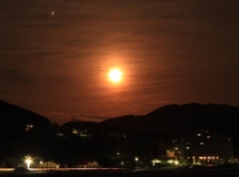 6時過ぎ、ぽっかり浮かび上がったお月さん。今夜は満月のようです。 お月さんを …