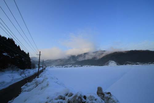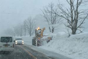 ペンション前の道の向こう側 除雪で出来た雪の山に登って撮ります 昨日に続き今日もガスが出て 白く塗りつぶされてましたが 夕方には晴れてきて 朝から降りだした雨も上がります 買い物から帰ってきて夕方 5時から9時まで4時間 週末の雪に備えて除雪作業 そんなに積もらないことを祈ります |