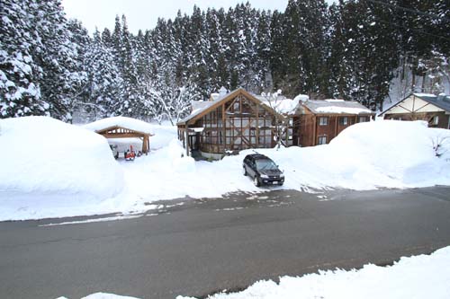 BBQ小屋の屋根にも大量の雪 今日は子供たちに雪下ろしをしてもらいました いいお天気でスキーウェアー着てたら暑いくらい お陰で小屋も軽そうになりました この後は私の仕事 下ろした雪をどこかに飛ばさないといけませんが もう飛ばす所が無くなってきてます あとは駐車場が狭くなってゆくばかり これ以上降ると ほんと大変です |