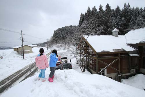昨夜から雨も雪に変わり 朝には積雪10センチ弱? ってとこでしょうか 前回来られたときには 今の半分くらいの山だったけど 今回は高すぎて躊躇してました でも 登ってみると何てことなかったね 足を雪に埋めながら それでも楽しそう 子供は軽いからそんなに踏み込まないけど 大人はそうは行きませんね 膝まで埋まりながら道つくり でも楽しいからOKですね |