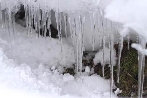 私が起きた時には−4℃でした 家内が起きたもう少し早い時間には −6℃だったようです どうりで こんな所にもツララが出来るはずです 解けかけた雪の下には春を待つ草 まだ早いよ… と言わんばかりにツララ 今日は気晴らしのスキーに行きました お昼頃の1時間程度 気温がそんなに上がってなかったから 雪質も悪くなく気持ちよく滑れました これ以上滑ると疲れて仕事に差し支えます |